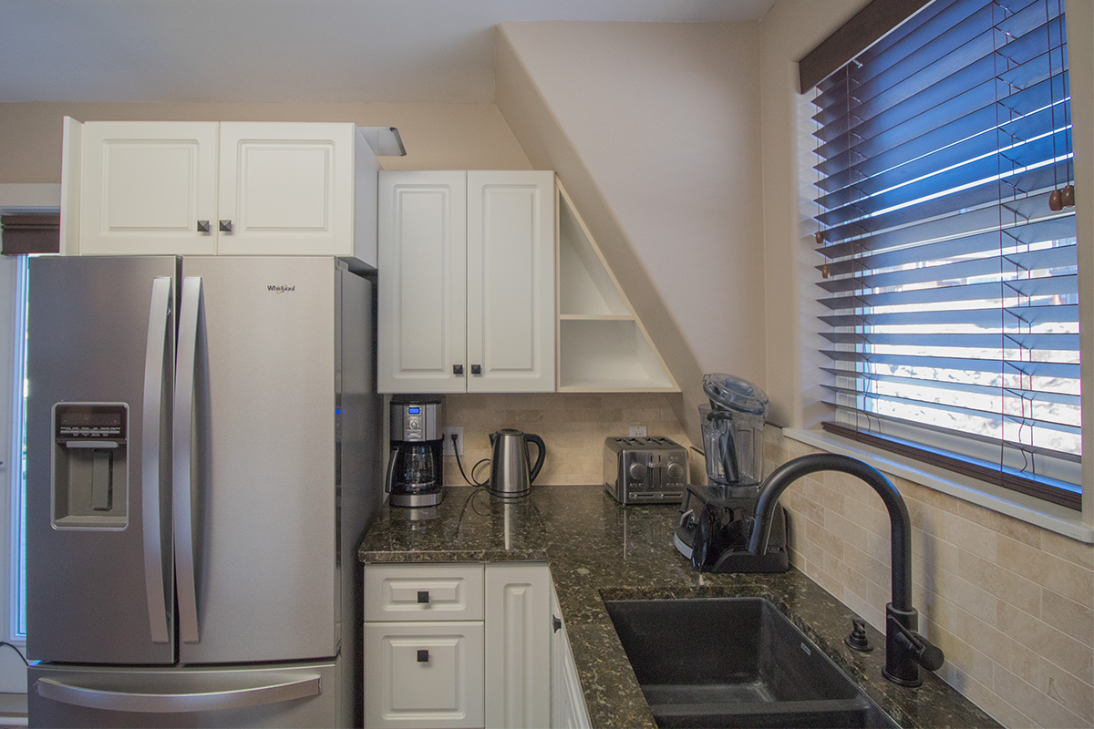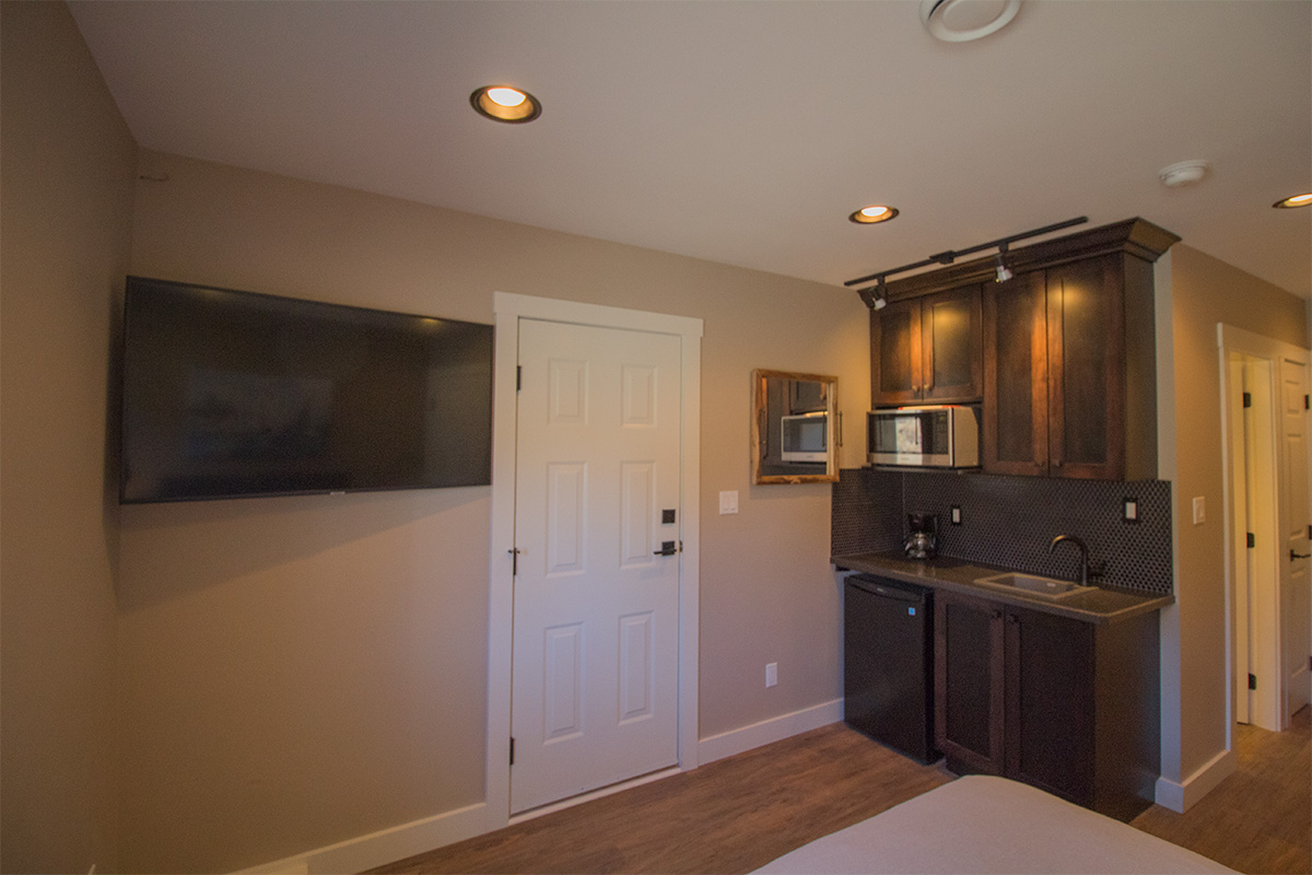 The one bedroom suite on the lower floor is suitable for those looking for a comfortable bed, and coffee or tea in the morning.
